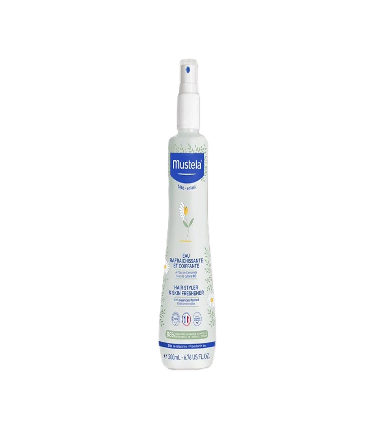 Laisse la peau de bébé propre et fraîche, avec "l'odeur de bébé" Mustela®. Permet de parfumer, rafraîchir, coiffer bébé, grâce à sa formule spéciale et son conditionnement pratique en spray.