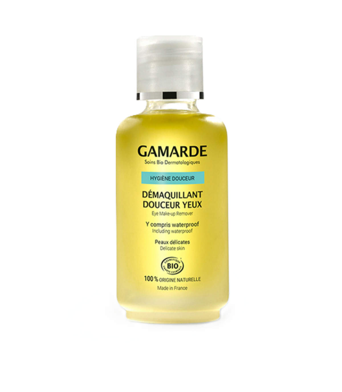 Formulé avec de l’Extrait de Calendula bio adoucissant et apaisant associé à de l’Huile essentielle de Myrte bio tonifiante, nle Démaquillant Douceur Yeux, certifié Bio et 100% d’origine naturelle, permet d’éliminer avec une infinie douceur toutes traces de maquillage, y compris les waterproofs.