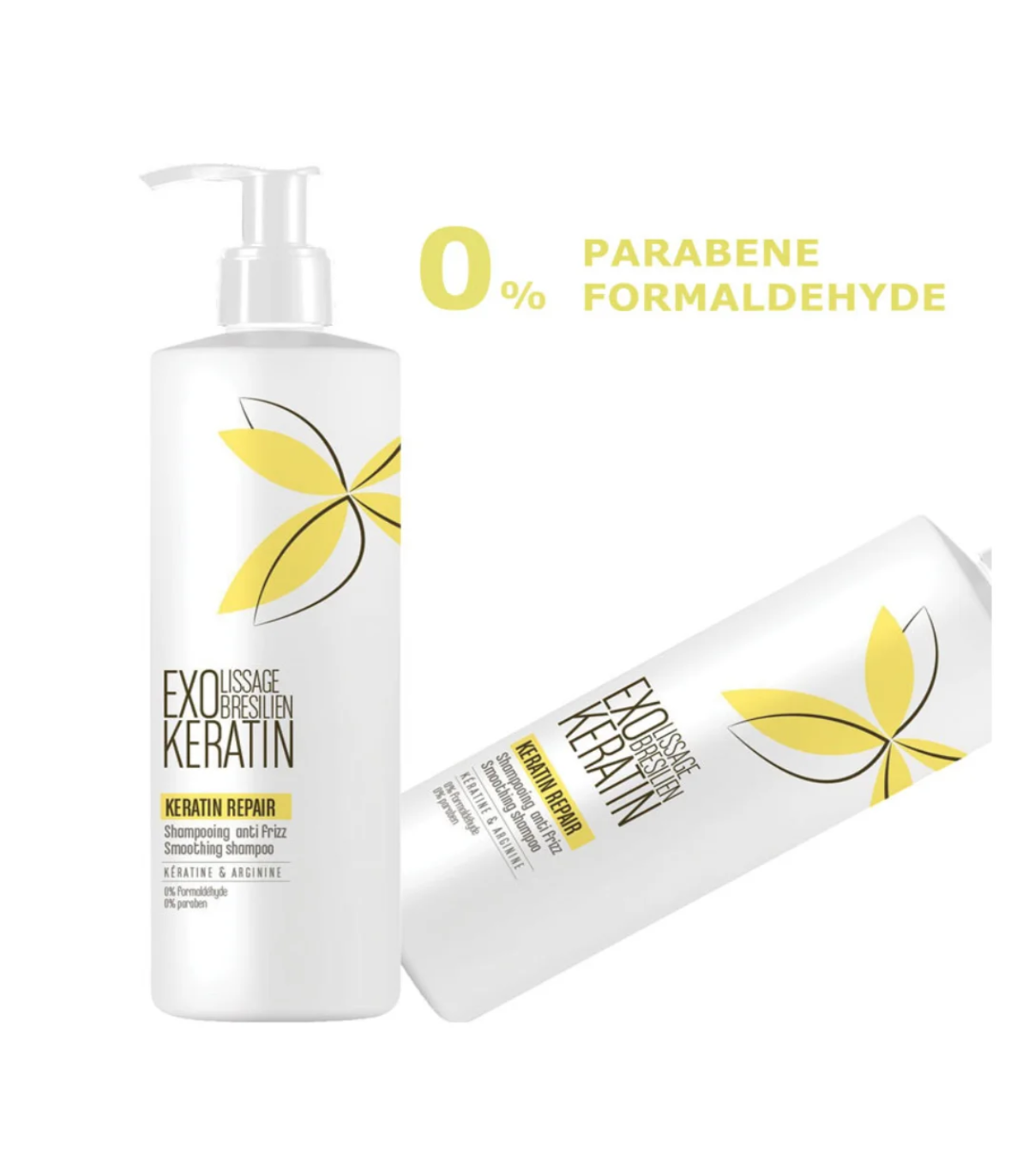 1/ Après le shampooing Anti Frizz KERATIN REPAIR EXO KERATIN, appliquer sur cheveux mouillés le démêlant KERATIN REPAIR,