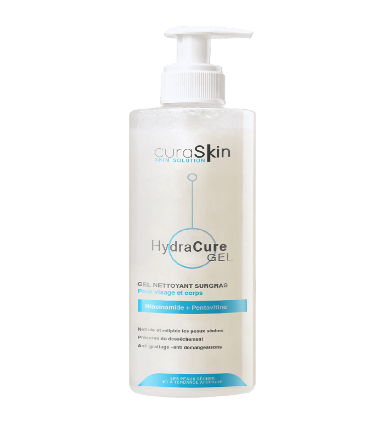 Un gel moussant qui nettoie en douceur les peaux sèches, déshydratées ou fragilisées, grâce à une association d’actifs qui assurent une hydratation instantanée et profonde. HydraCure Gel surgras est idéal pour réduire les sensations de grattages, renforcer la barrière cutanée et éliminer les impuretés pour une peau propre, douce et nette. Un complexe enrichi en : – Actifs surgraissants: qui possèdent de grandes vertus adoucissantes et hydratantes sur la peau et préservent le film protecteur de la peau. – Niacinamide: connue par sa capacité de restaurer la barrière de la peau, de stimuler la production de collagène et de réduire les rougeurs. – Pentavitin ® : permet une hydratation instantanée qui dure jusqu’à 72 heures, soulage les démangeaisons des peaux sèches et squameuses et renforce les défenses naturelles de la peau.