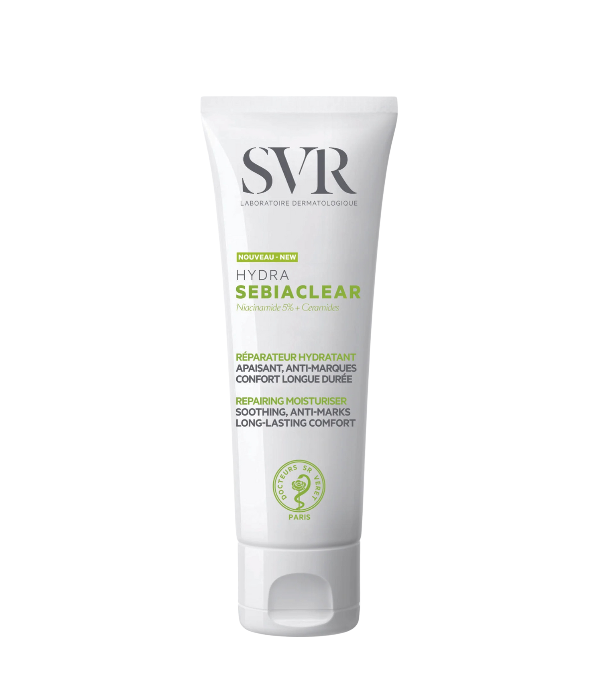 Les peaux à tendance acnéique sous traitements ont la peau sèche et fragilisée, Elles recherchent un soin adapté qui leur apporte confort et hydratation au quotidien, Plus qu'un hydratant compensateur, elles ont besoin d'un soin qui combat les imperfections et les marques résiduelles tout en hydratant leur peau qui subit une sécheresse intense, Pour répondre à ce besoin, SVR créé SEBIACLEAR HYDRA, le 1er* soin REPARATEUR apaisant à l'efficacité anti-marques, cliniquement prouvée,